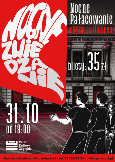 31 października wrota Pałacu Kultury Zagłębia zatrzasną się, uwięziwszy w monumentalnych wnętrzach grupę śmiałków, którzy zwiedzą pałac w całkowitych ciemnościach!UWAGA! Wydarzenie w klimacie horroru, podczas którego mogą pojawić się inscenizacje wywołujące przerażenie u młodszych odbiorców. Wydarzenie skierowane jest dla osób pełnoletnich. Może w nim wziąć udział młodzież od 12 roku życia pod opieką osoby dorosłej, pod warunkiem, że nie boi się tematyki horrorów, odpowiedzialność za małoletniego bierze opiekun. Szacowany czas zwiedzania około 90 minut.Wydarzenie nie będzie dostępne dla osób z niepełnosprawnościami w obszarze: ruchu, wzroku, słuchu, rozumienia oraz czucia.